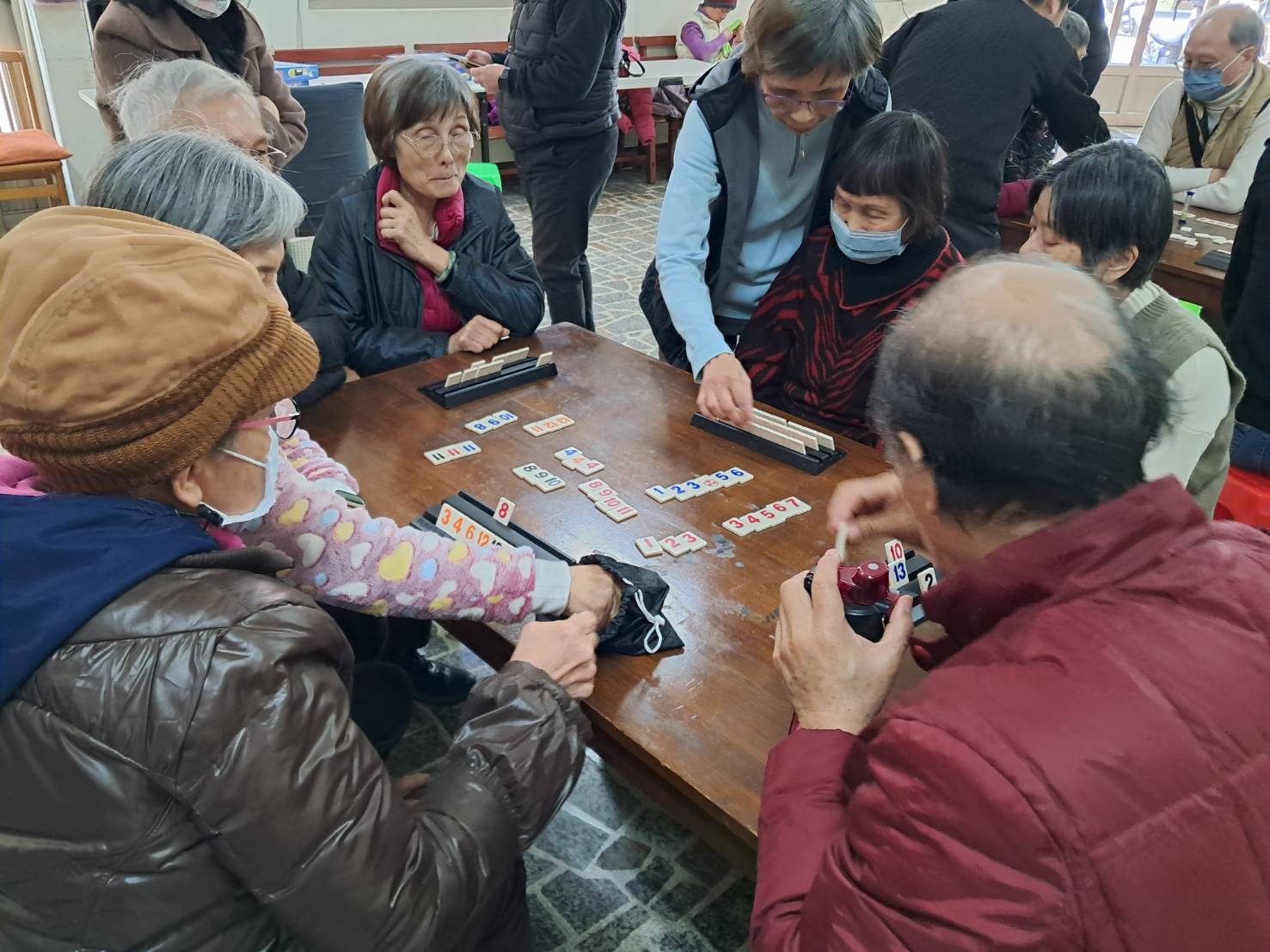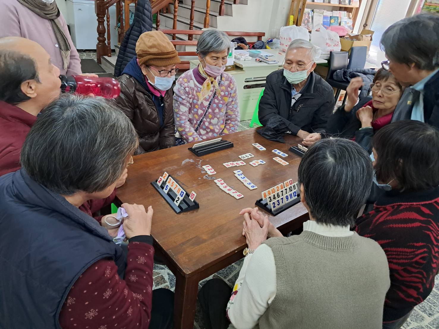 聽完分享,也開始下樓再一次玩起拉密,大家也是越玩越刺激,一定要拼輸贏啦!