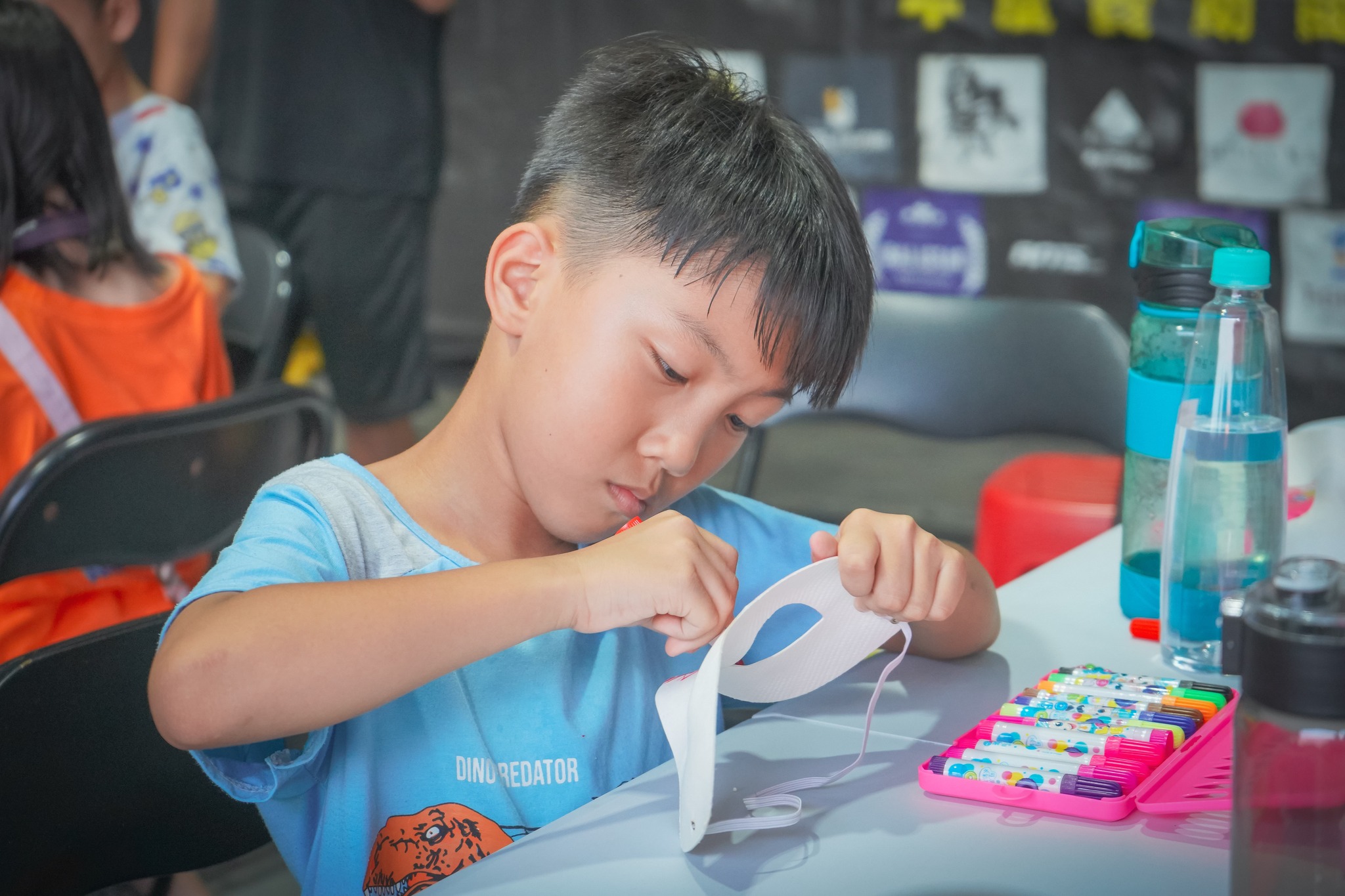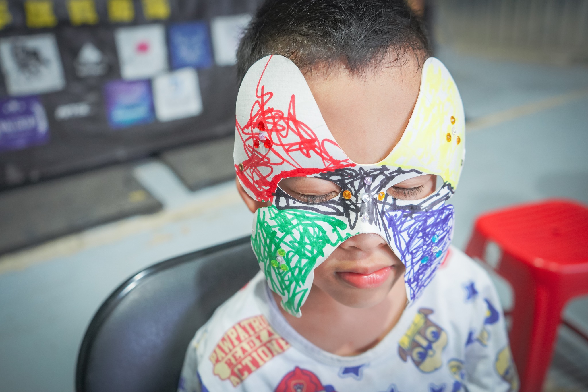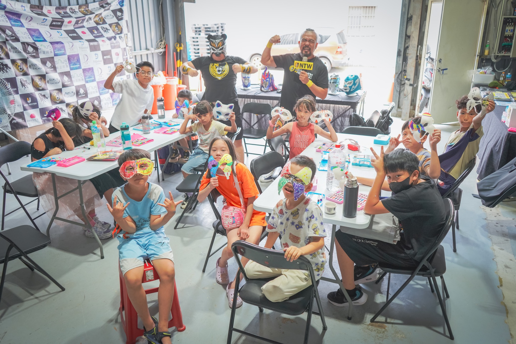 孩子們也親手彩繪摔角面具,透過創作表達自己的夢想與個性——有人畫出蜘蛛人、有人選擇成為太空人、還有人想當老師。勇哥鼓勵孩子:「戴上面具,就代表你有勇氣追夢,也有力量成為更好的自己。」